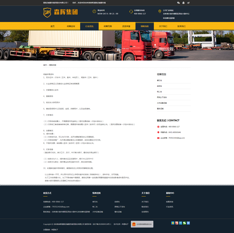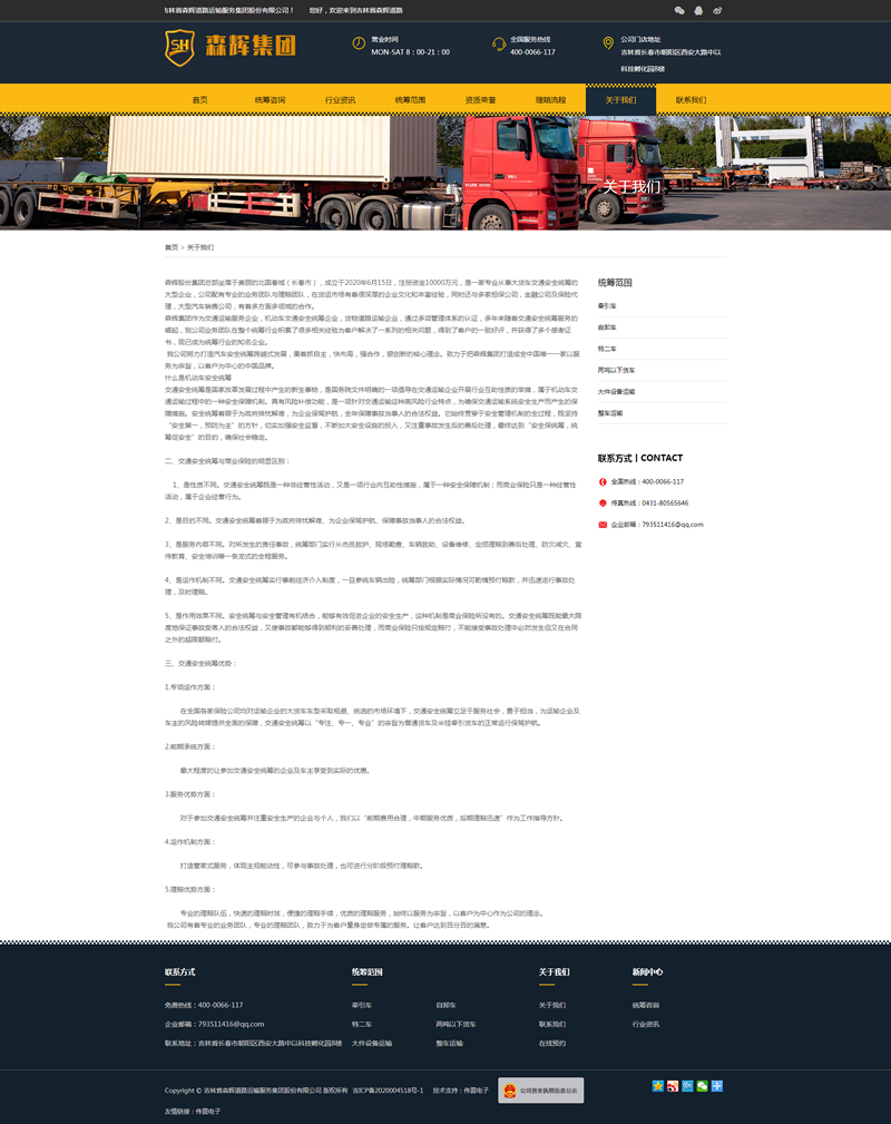 吉林省長(zhǎng)春森輝道路運(yùn)輸服務(wù)集團(tuán)有限公司網(wǎng)站效果圖