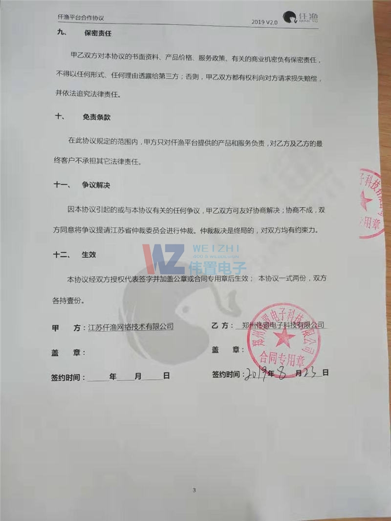 偉置電子網(wǎng)站建設(shè)公司與仟漁平臺(tái)合作協(xié)議