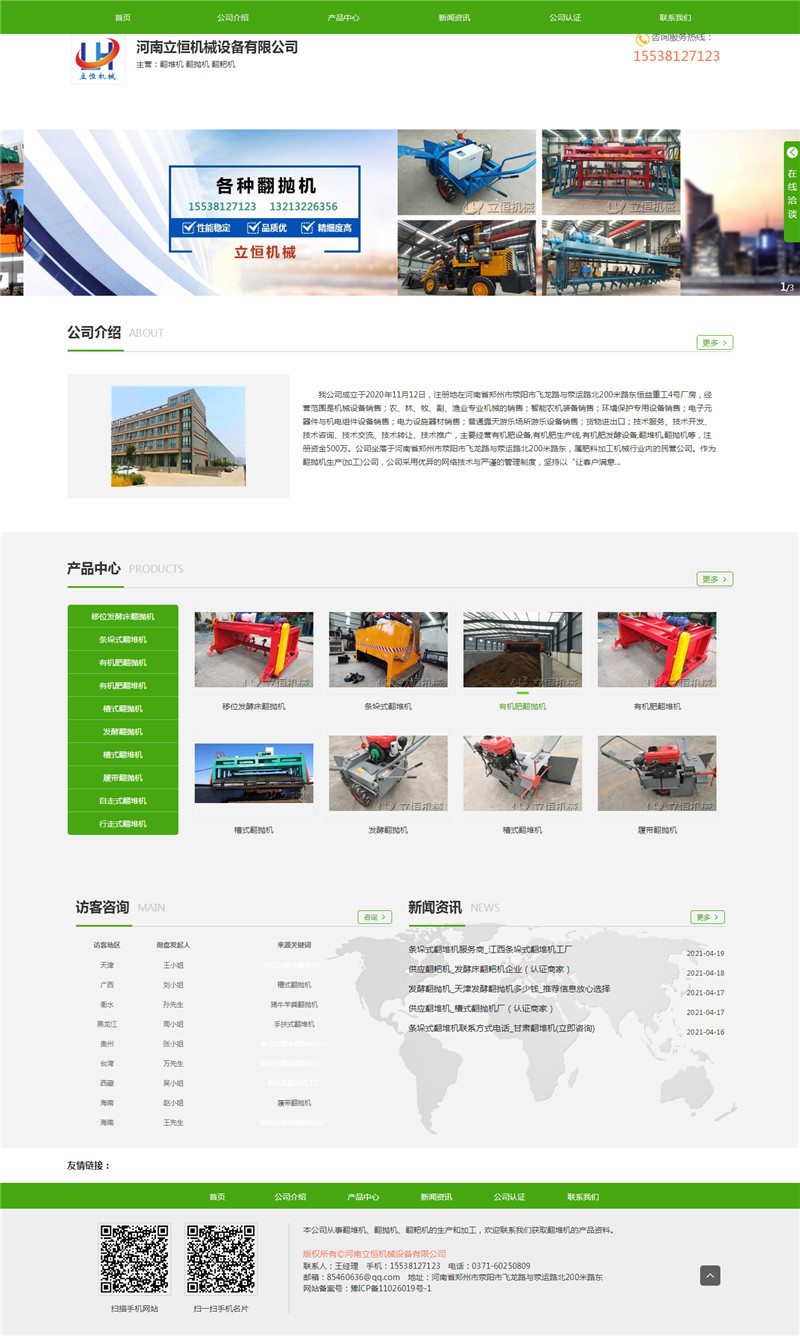 立恒機(jī)械有機(jī)肥翻拋機(jī)網(wǎng)站4.19日制作成功,http://www.yutai888.com/網(wǎng)站內(nèi)容主要是有機(jī)肥翻拋機(jī),翻耙機(jī),翻堆機(jī)等產(chǎn)品內(nèi)容。網(wǎng)站頁面整體整潔大方,布局合理。