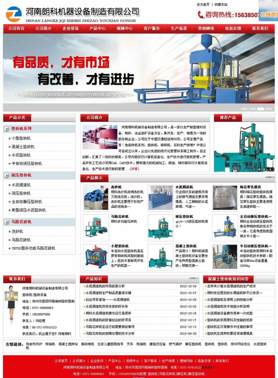 河南朗科機械設備制造有限公司www.hnlkzg.com,是一家以生產新型建材設備、制砂、冶金選礦設備為主,集開發(fā)、生產、銷售為一體的股份制企業(yè),公司位于中國交通樞紐鄭州市。公司主營產品有:免燒磚機系列、墊塊機、破碎機、石料生產線等