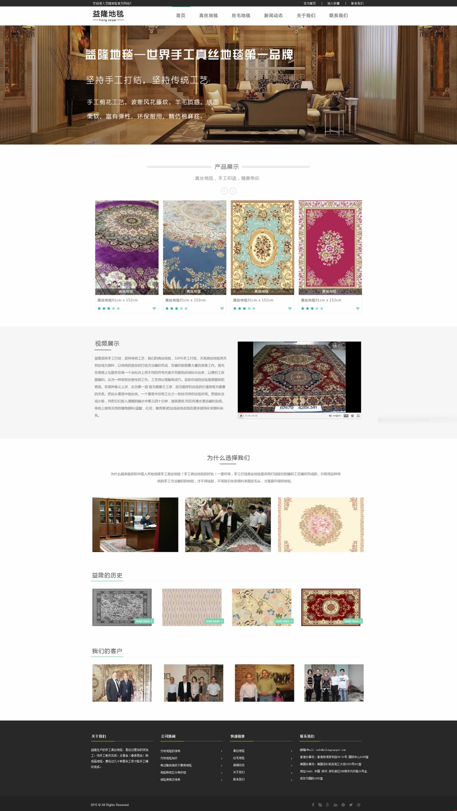 【網(wǎng)站建設(shè)效果解釋】益隆地毯客戶蔡經(jīng)理及老總致意識(shí)到,h5網(wǎng)站是目前唯一可以最大程度上獲得網(wǎng)站效果及客戶肯定最有效簡(jiǎn)潔的方法。所以此次網(wǎng)站建設(shè)設(shè)計(jì)時(shí)以大氣,簡(jiǎn)潔為主,兼容后期網(wǎng)站優(yōu)化思想,益隆地毯全站將采用html5+css3樣式制作,期望能獲得客戶的較大認(rèn)可,