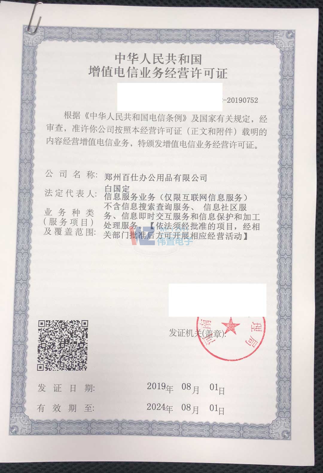 百仕辦公增值電信業(yè)務(wù)經(jīng)營(yíng)許可證申請(qǐng)成功