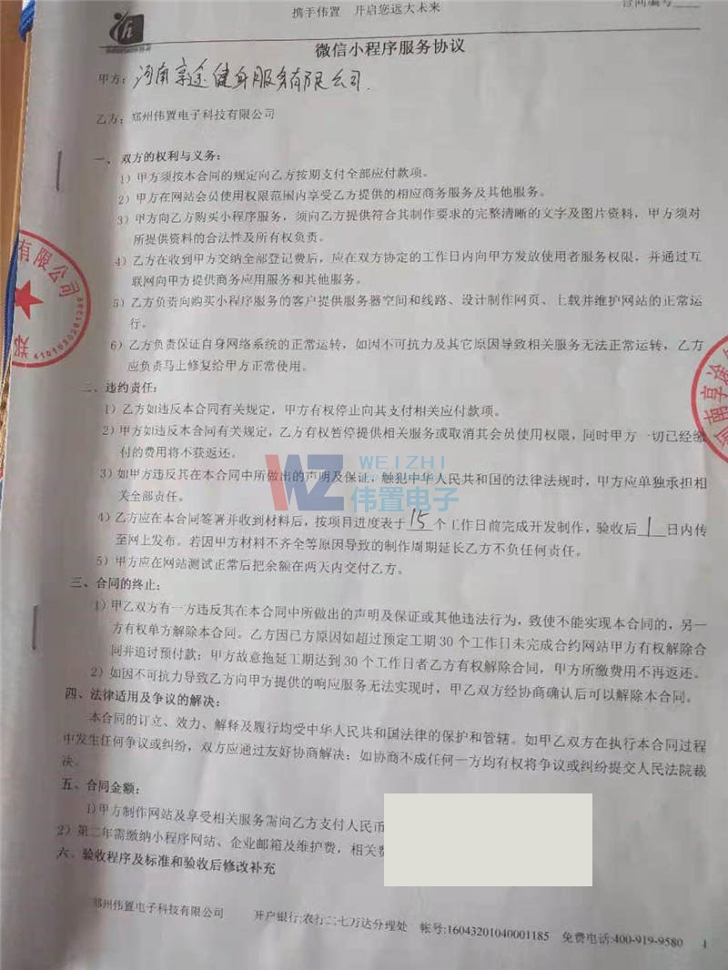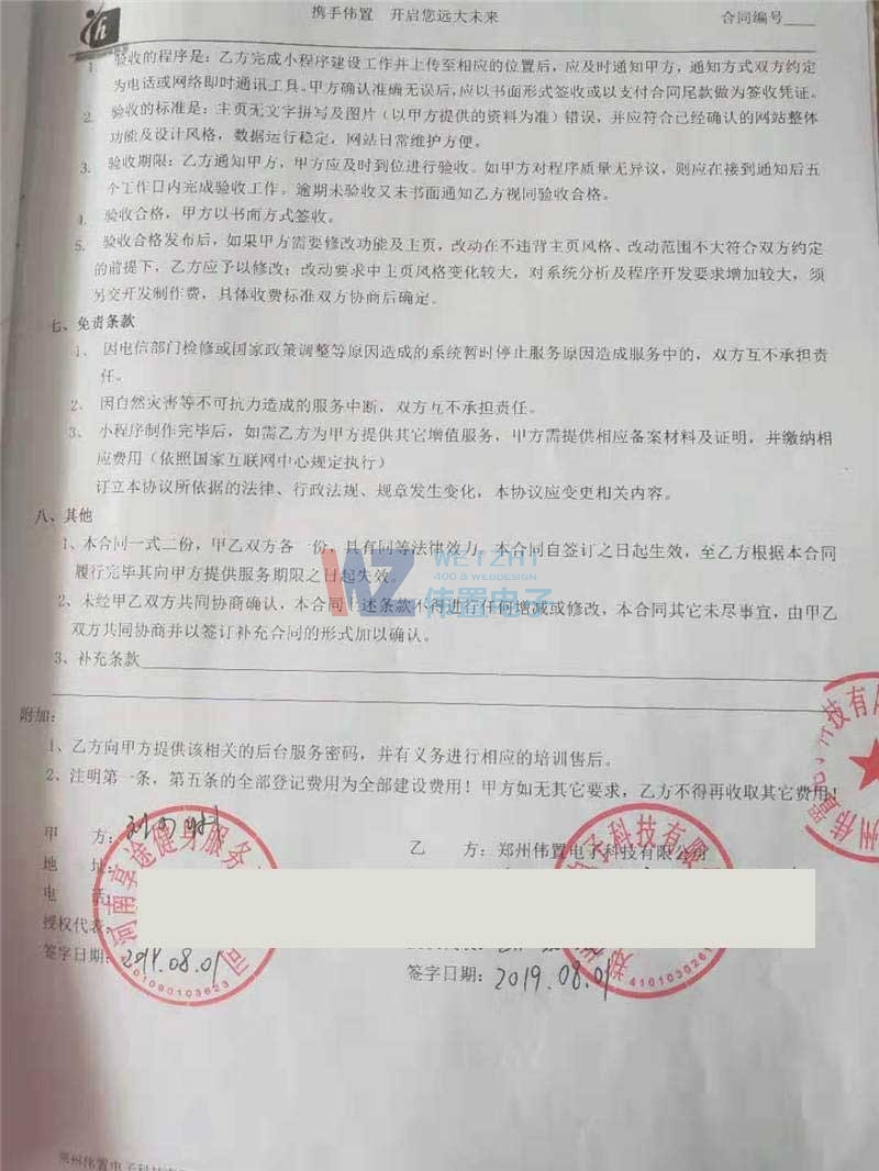 偉置電子、享途健身于簽單了小程序合作項目。下面是鄭州網(wǎng)站建設(shè)公司提供的享途健身公司的營業(yè)信息、小程序合作協(xié)議書。周所周知、小程序可以在微信內(nèi)被便捷地獲取和傳播,同時具有出色的使用體驗。