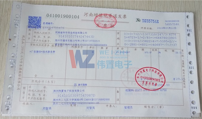 項目名稱:河南省偉華安全技術(shù)有限公司合作發(fā)票