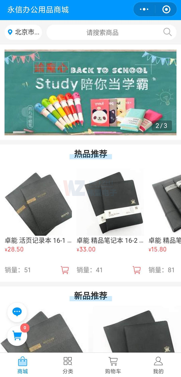 您只需要在微信小程序上找"永信辦公用品"就可以查詢(xún)到,各種微信商城站供您選擇!