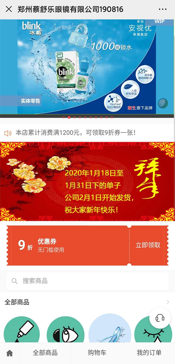 蔡某樂眼鏡小程序名稱與種類:微信小程序;小程序開發(fā)價格:商城版小程序;
